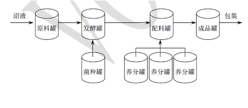微生物發(fā)酵工藝主要分為5道工序。1貯料,豬場糞便與污水經(jīng)預處理(破碎)后送入原料罐,貯藏1-2d后送入發(fā)酵罐;2接種發(fā)酵,料液進入發(fā)酵罐,接種特定有益生物,并伴隨充分的攪拌混合,物料在發(fā)酵罐中停留2-4d后送入配料罐;3養(yǎng)分配料,為使肥料品質(zhì)符合國家標準,需按嚴格的工藝程序向物料中添加養(yǎng)分;4貯料,添加養(yǎng)分后的物體送入成品罐,貯藏1-2d后送入包裝罐;5包裝,對成品肥料進行自動計量包裝。