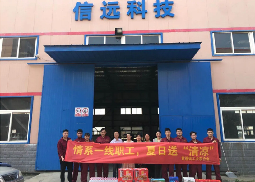 8月5日,正值夏日高溫之際,公司鉚焊車間、安裝調(diào)試車間如火如荼地開展著,為確保職工健康和落實(shí)防暑降溫措施。紫蓬鎮(zhèn)黨委王書記及鎮(zhèn)工會何主席等一行蒞臨我公司開展“關(guān)愛一線職工,夏日送清涼”慰問活動,為炎炎夏日仍奮戰(zhàn)在一線的職工帶來了純牛奶、王老吉、蘇打水、方便面等慰問品防暑降溫“清涼包”,囑咐我們員工要注意安全,保重身體。