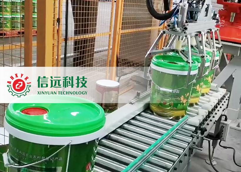 后端的碼垛機器人設(shè)備可以碼桶,也可以碼箱。通過程序設(shè)計,機器人可以自動完成緊湊、整潔的堆垛,它的使用大大減少了工人數(shù)量,減少了勞動強度。不僅碼垛整齊美觀,生產(chǎn)效率也得到了大幅度的提高,還為企業(yè)節(jié)省了很多的用工成本。對于企業(yè)提高生產(chǎn)力、減少環(huán)境污染、降低生產(chǎn)成本具有重要意義。