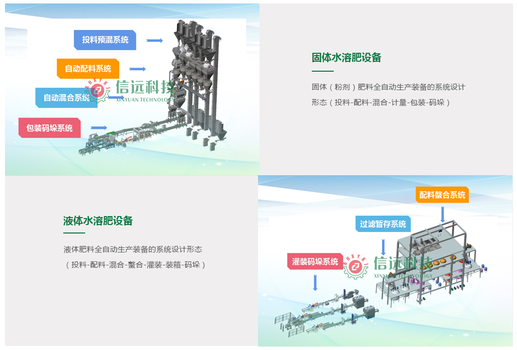 在新的國際環(huán)境和政策形式下,肥料生產(chǎn)企業(yè)到了設(shè)備必須要升級換代的時期,一體化集成的新型粉劑水溶肥生產(chǎn)線設(shè)備和液體水溶肥生產(chǎn)線設(shè)備,是未來肥料生產(chǎn)企業(yè)保持競爭力的核心要素。安徽信遠(yuǎn)包裝科技有限公司作為國內(nèi)水溶肥生產(chǎn)線一體化集成設(shè)備的供應(yīng)商,已經(jīng)走在同行的前列,率先與廣大肥料生產(chǎn)企業(yè)展開了合作。