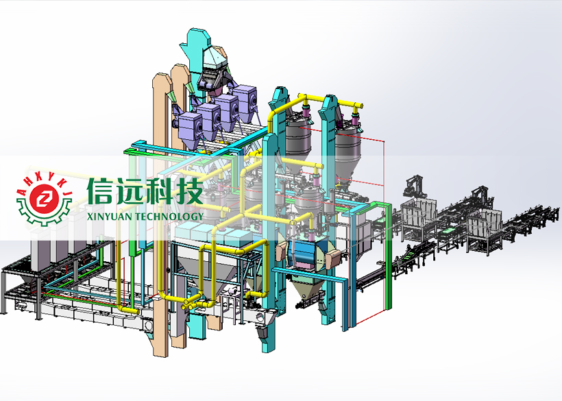 1、集投料、粉碎、配料、混合、計(jì)量、包裝、碼垛、除塵于一體