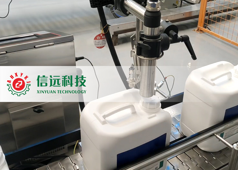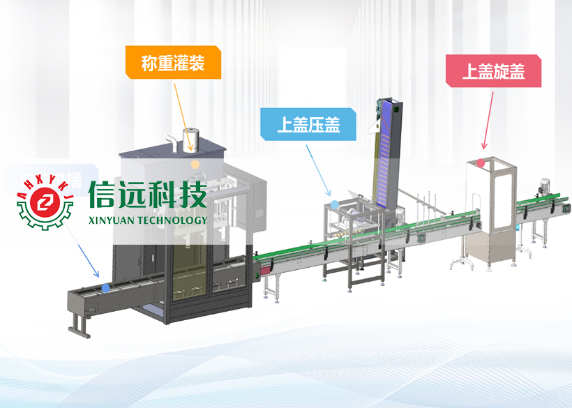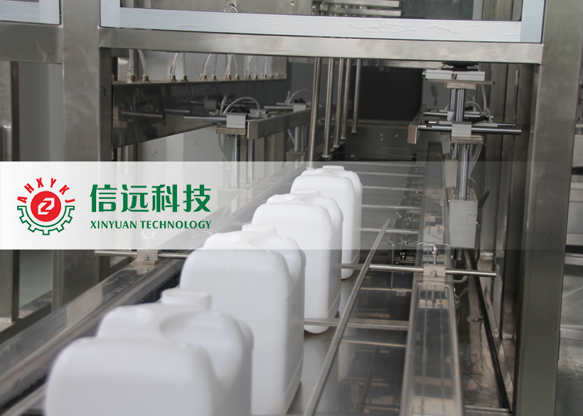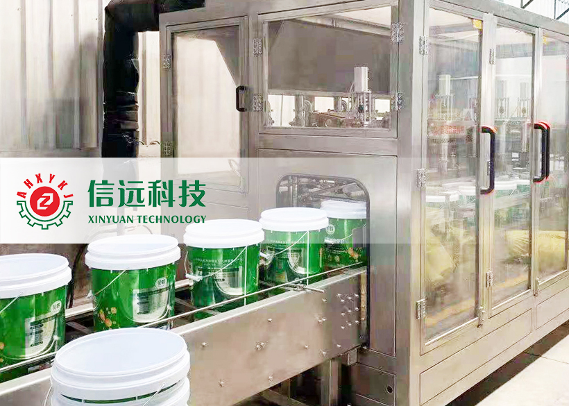 信遠(yuǎn)科技桶裝液體全自動(dòng)灌裝機(jī)組,由灌裝機(jī)和上蓋旋蓋機(jī)/上蓋壓蓋機(jī)組成。可以灌裝5-30L范圍之間的桶裝液體物料,生產(chǎn)企業(yè)可以根據(jù)自己的需要,選擇不同型號(hào)的灌裝機(jī)和配套輔機(jī)。這套機(jī)組設(shè)備采用不銹鋼材質(zhì)設(shè)計(jì)制造,適用于食品、化工、醫(yī)藥等行業(yè)不帶氣體的流體、半流體物料的計(jì)量灌裝,具有自動(dòng)完成進(jìn)桶、定位、灌裝、出桶、上蓋、旋蓋/壓蓋、噴碼等一系列功能。