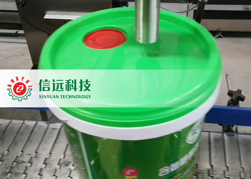 ■上蓋和旋蓋/壓蓋工段:配有全自動(dòng)上蓋機(jī),實(shí)現(xiàn)有序精準(zhǔn)掛蓋上蓋。小口桶采用全自動(dòng)抓旋式旋蓋機(jī),可以根據(jù)桶蓋大小進(jìn)行尺寸調(diào)節(jié)和擰蓋力度,兼容多種螺紋瓶蓋;廣口桶采用全自動(dòng)滾壓式壓蓋機(jī),根據(jù)不同尺寸的桶蓋,在主軸上調(diào)整對(duì)應(yīng)尺寸的螺母位置,即可正常封蓋,適用于各種國(guó)際通用的標(biāo)準(zhǔn)桶封蓋。旋蓋/壓蓋機(jī)構(gòu)運(yùn)行穩(wěn)定,可以保證封蓋質(zhì)量和精密度。