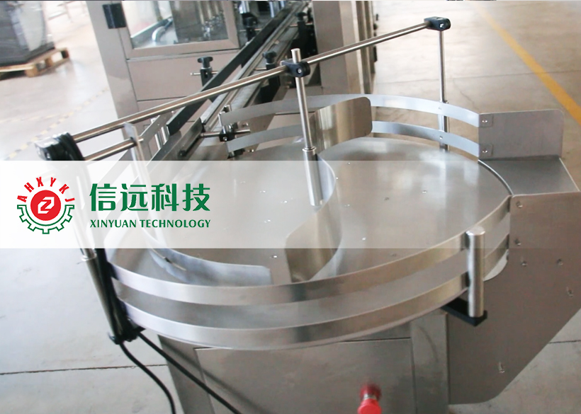 ?理瓶進瓶工段:全自動圓盤式高速理瓶機,主要用于各種圓形塑料瓶、玻璃瓶的自動整列、定向和輸送,具有理瓶快、導瓶精準、出瓶通暢、操作簡便等特點。整機采用不銹鋼為主要材料,用于配合整組聯(lián)動。出瓶的速度和間隔,與灌裝機完全配套,同步控制。