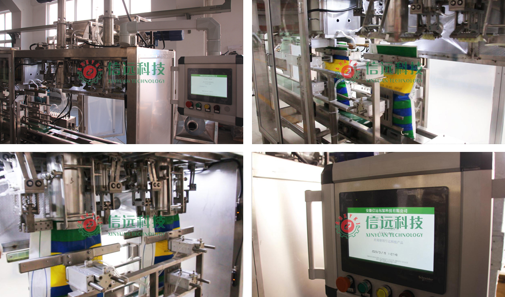 信遠科技新一代雙工位粉劑包裝機,采用PLC智能微機控制,交互界面操作簡易,自動化程度高。從進料到封口均由兩套獨立機構(gòu)組成,速度快、效率高;在觸摸屏面板上可以完成手動操作和自動操作的切換,各種參數(shù)可以隨意調(diào)整,同時具有包裝記數(shù)和重量累計功能;夾袋充填裝置采用下料通道和除塵通道分離技術(shù),減少粉塵的外溢;該機設(shè)有振動裝置和袋外輔助排氣裝置,下料完成后托放袋底,將袋中物料振實,排出袋內(nèi)部分氣體,減少粉狀物料在包裝袋內(nèi)的空氣含量而造成脹包等現(xiàn)象,確保封口整齊美觀;整機精密元器件均采用國內(nèi)外知名品牌,密封設(shè)計,適合粉塵環(huán)境使用,確保設(shè)備長期、穩(wěn)定運行;該機有故障自動診斷功能和聲光報警系統(tǒng),及時對出現(xiàn)的問題進行警報,同時設(shè)置開門停機保護裝置,有效保護操作人員安全生產(chǎn)。