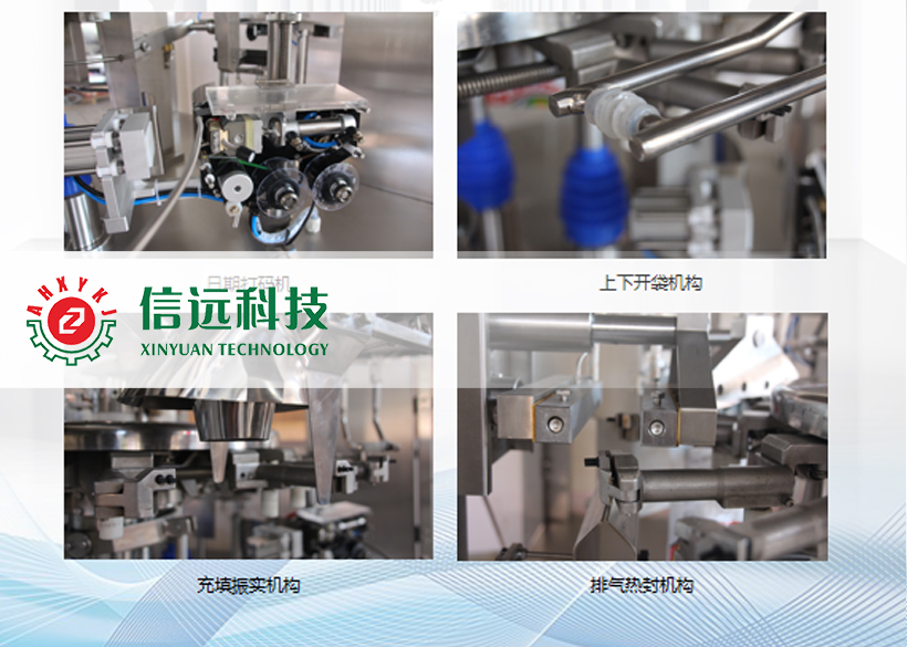 包裝機根據(jù)程序設(shè)計,自動完成取袋、立式上袋、打碼、開袋、充填、振實、熱封以及整形輸出等各工位的有序運行。