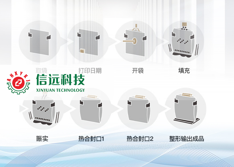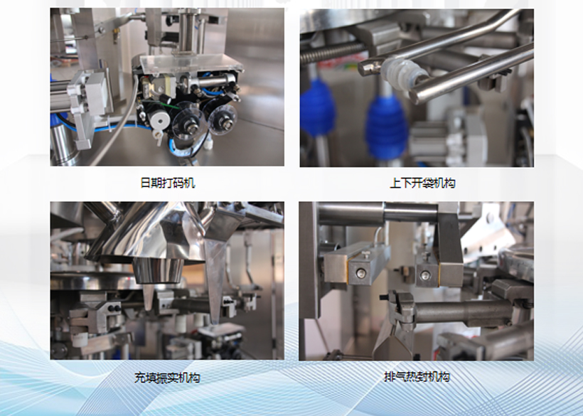 包裝機(jī)根據(jù)程序設(shè)計,自動完成取袋、立式上袋、打碼、開袋、充填、振實、熱封以及整形輸出等各工位的有序運(yùn)行。