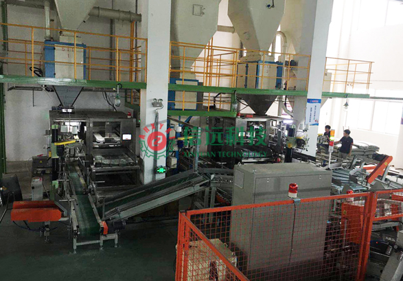 自動(dòng)給袋、上袋、縫包、輸送、機(jī)器人碼垛于一體