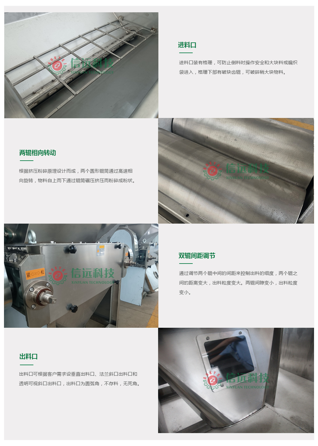 粉碎速度快、粉碎量大、粉碎效果好,不粘輥、操作簡單