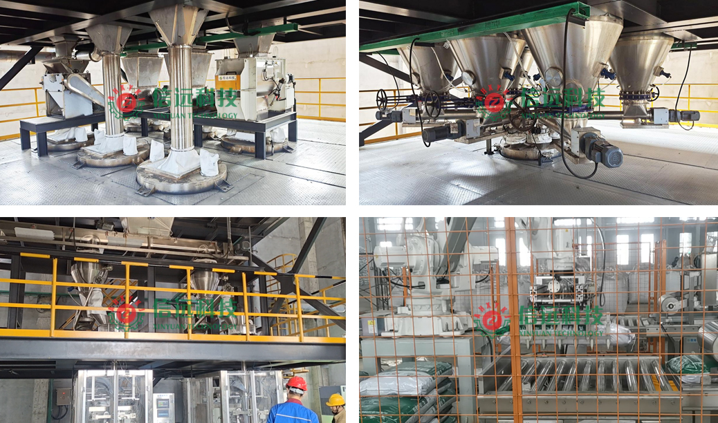 該套自動(dòng)化藥肥生產(chǎn)線(xiàn)為塔式立體結(jié)構(gòu)設(shè)計(jì),由投料系統(tǒng)、預(yù)處理系統(tǒng)、配料系統(tǒng)、混合系統(tǒng)和包裝系統(tǒng)組成。配方原料通過(guò)升降機(jī)運(yùn)送到投料平臺(tái),完成藥、肥原料的投送;結(jié)塊原料、顆粒原料經(jīng)過(guò)破碎、粉碎處理,進(jìn)入配混環(huán)節(jié);包裝環(huán)節(jié)設(shè)備配置有全自動(dòng)重袋上袋包裝機(jī)和全自動(dòng)小袋制袋包裝機(jī),可以生產(chǎn)不同克重規(guī)格的袋裝粉劑藥肥產(chǎn)品。