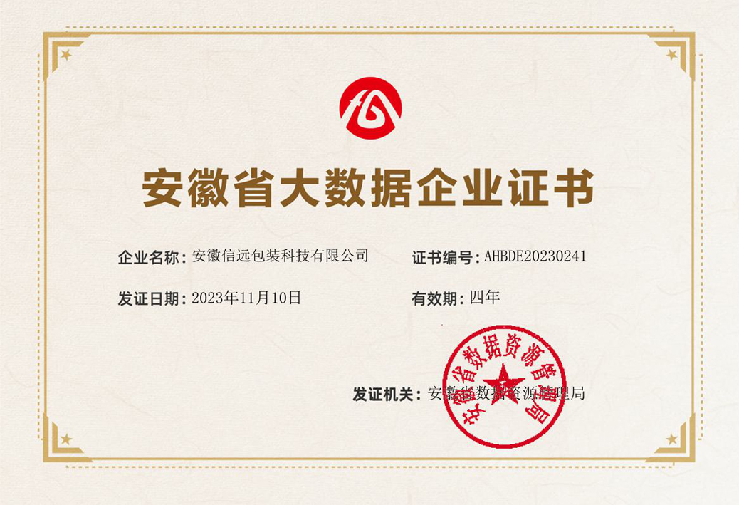 11月3日,安徽省數(shù)據(jù)資源管理局網(wǎng)站發(fā)布《關(guān)于2023年度安徽省大數(shù)據(jù)企業(yè)名單的公示》。安徽信遠包裝科技有限公司憑借在自動化設(shè)備領(lǐng)域長期的數(shù)據(jù)積累和數(shù)據(jù)應(yīng)用,以及借助大數(shù)據(jù)信息助推兩化融合發(fā)展的優(yōu)秀成績,成功榮獲“安徽省大數(shù)據(jù)企業(yè)”稱號。該稱號是信遠科技繼榮獲安徽省新產(chǎn)品、安徽省著名商標(biāo)、安徽省專精特新企業(yè)等多項認定后,又一項省級榮譽認定。