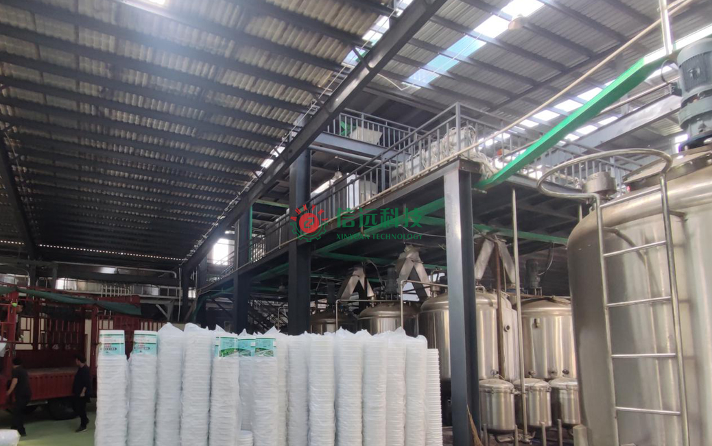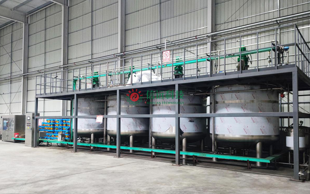 產(chǎn)線配置:預(yù)處理、配料、降解、乳化、計量、灌裝、封口、裝箱、封箱、碼垛等設(shè)備
