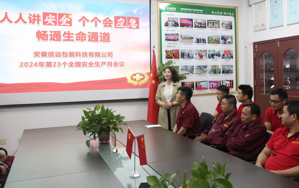 今年6月是第23個(gè)全國(guó)“安全生產(chǎn)月”,主題是“人人講安全、個(gè)個(gè)會(huì)應(yīng)急——暢通生命通道”。為增強(qiáng)員工的安全意識(shí)和應(yīng)急能力,日前,安徽信遠(yuǎn)包裝科技有限公司組織各部門(mén)召開(kāi)2024年“安全生產(chǎn)月”專(zhuān)題會(huì)議,要求公司各部門(mén)以習(xí)近平新時(shí)代中國(guó)特色社會(huì)主義思想為指導(dǎo),深入學(xué)習(xí)宣傳貫徹黨的二十大精神和習(xí)近平總書(shū)記關(guān)于安全生產(chǎn)重要論述,加強(qiáng)組織領(lǐng)導(dǎo),精心落實(shí)部署要求,確保把安全生產(chǎn)工作抓緊抓好抓出成效。