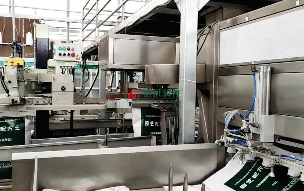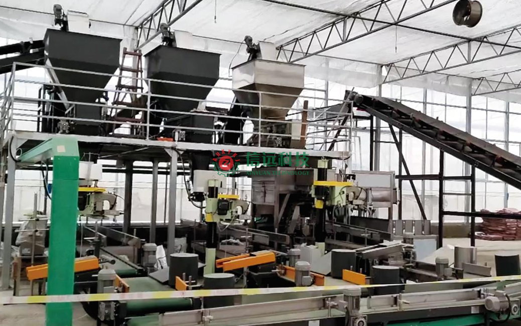安徽信遠(yuǎn)包裝科技有限公司作為國(guó)內(nèi)知名的農(nóng)資農(nóng)化設(shè)備專業(yè)制造商,按約為客戶提供了全套基質(zhì)土營(yíng)養(yǎng)土自動(dòng)化生產(chǎn)線設(shè)備。生產(chǎn)流程:首先,把配方原料進(jìn)行預(yù)處理生產(chǎn),然后按照工藝配比進(jìn)行動(dòng)態(tài)配料,經(jīng)過破碎混合輸送至篩分系統(tǒng),之后通過輸送機(jī)連續(xù)供料給重袋包裝機(jī)工段,全自動(dòng)包裝機(jī)可以自動(dòng)完成取袋、上袋、套袋、夾袋、計(jì)量、充填和縫包作業(yè)。包裝好的成品袋在輸送過程中,自動(dòng)完成倒包、振實(shí)、壓平等理包整形作業(yè),然后匯流輸送裝車。