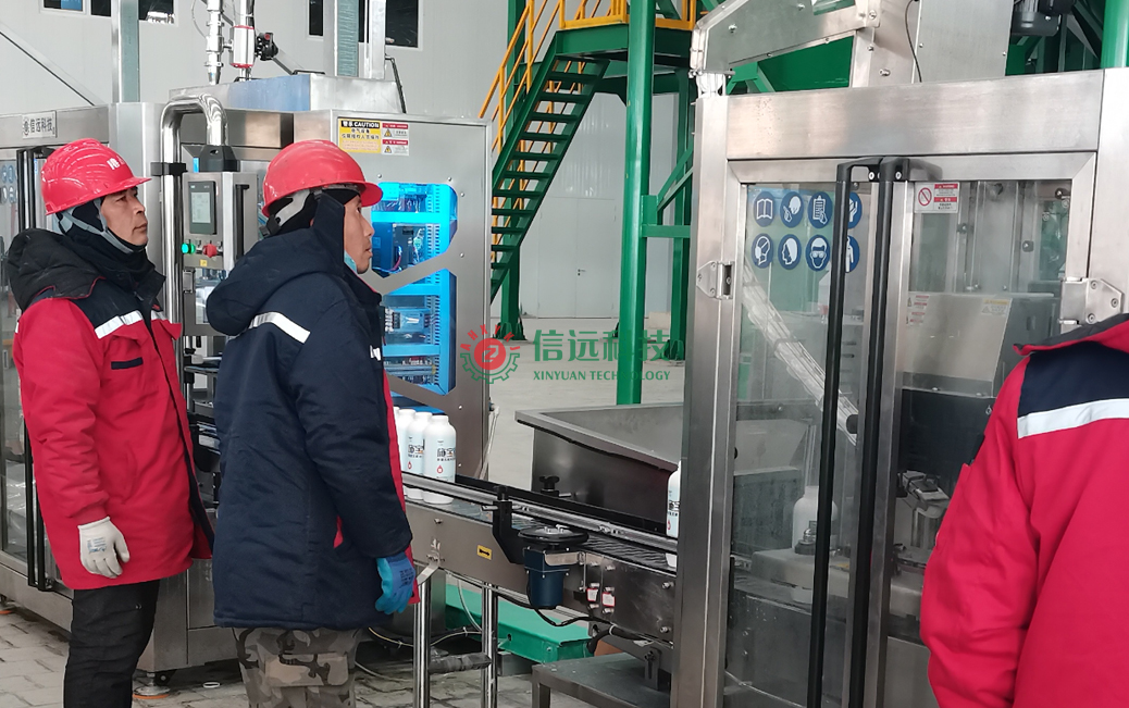 美盛化肥“施寶蜜”品牌液體水溶肥產(chǎn)品,由安徽信遠(yuǎn)包裝科技有限公司設(shè)計(jì)制造的自動(dòng)化液體水溶肥設(shè)備批量生產(chǎn),該生產(chǎn)線具有配料、螯合、過濾、灌裝、封口、打包、捆扎等一體化功能,速度快、精度高、桶裝瓶裝皆可,可以生產(chǎn)各種不同元素配方的液體水溶肥產(chǎn)品。