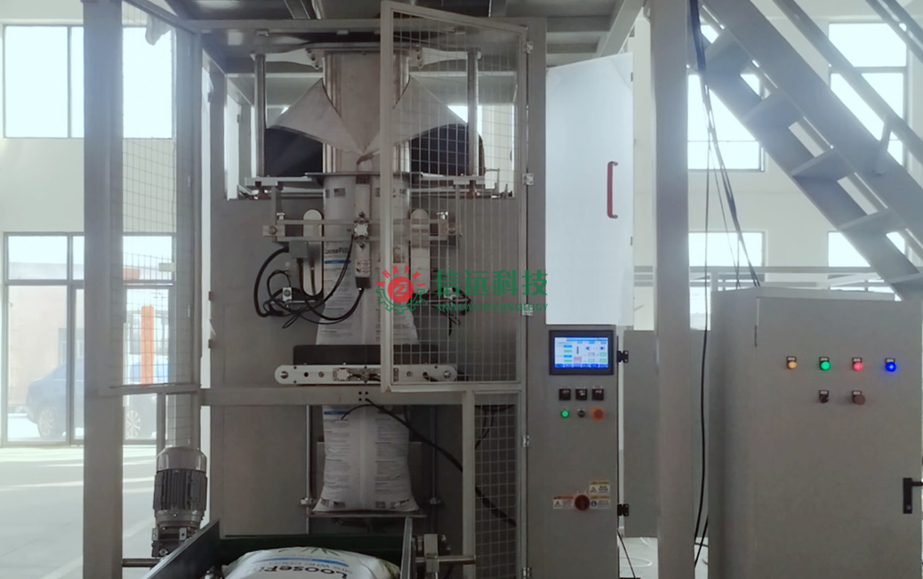 安徽信遠(yuǎn)包裝科技有限公司作為國內(nèi)知名的農(nóng)資農(nóng)化設(shè)備專業(yè)制造商,為該美國客戶提供的設(shè)備是一套制袋式重袋包裝系統(tǒng),由緩存料倉、計(jì)量系統(tǒng)、生產(chǎn)平臺、制袋包裝機(jī)、輸送機(jī)和電氣控制系統(tǒng)組成。制袋包裝機(jī)可以自動完成制袋成型、充填振實(shí)、扎孔排氣、封口切口、批號打碼等作業(yè);包裝機(jī)后端與輸送機(jī)相聯(lián),自動完成爬坡、直線輸送和轉(zhuǎn)向輸送等動作,滿足了客戶的生產(chǎn)需要。