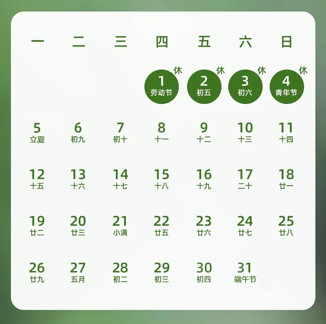 “五一”小長假開啟在即,根據國家節(jié)假日放假通知安排,信遠公司結合實際情況,決定5月1日(周四)—4日(周日)放假,共4天?!拔逡还?jié)”是探親游玩的出行高峰,信遠公司溫馨提示廣大新老客戶朋友、公司員工,如計劃外出,請?zhí)崆昂侠硪?guī)劃出行路線,自駕需提前檢查車況,避免疲勞駕駛,安全出行,平安回家,讓我們共同度過一個歡樂祥和的節(jié)日。