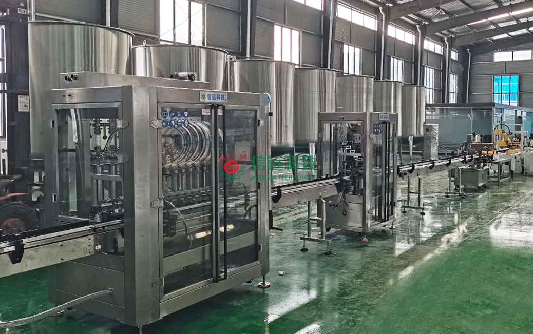 安徽信遠(yuǎn)包裝科技有限公司設(shè)計制造的瓶裝液體肥灌裝碼垛生產(chǎn)線設(shè)備,是一套全自動化的灌裝碼垛系統(tǒng),由灌裝機(jī)、上蓋機(jī)、旋蓋機(jī)、鋁箔封口機(jī)、噴碼機(jī)、貼標(biāo)機(jī),封箱機(jī)、捆扎機(jī)和碼垛機(jī)器人等裝置組成,可以自動完成從裸瓶到整箱堆垛的流水線生產(chǎn)。灌裝機(jī)有不同的機(jī)型配置,灌裝頭數(shù)量也不同(有四頭、六頭、八頭、十頭等),可以灌裝100-1000ml容量的立式瓶液體肥,肥料生產(chǎn)廠家可以根據(jù)自己的產(chǎn)品產(chǎn)能需求和采購預(yù)算進(jìn)行選配。
