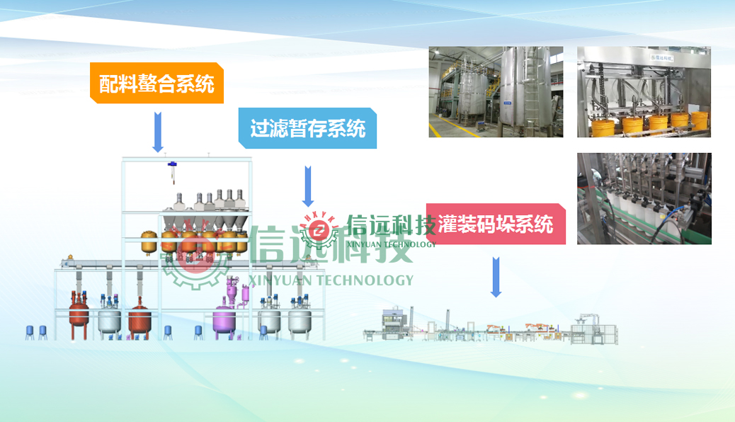 信遠(yuǎn)科技液體肥成套生產(chǎn)線設(shè)備,采用塔式立體結(jié)構(gòu)設(shè)計(jì),由投料系統(tǒng)、預(yù)處理系統(tǒng)、配料系統(tǒng)、螯合系統(tǒng)、計(jì)量灌裝系統(tǒng)、上蓋封口系統(tǒng)、噴碼貼標(biāo)系統(tǒng)、機(jī)器人裝箱碼垛系統(tǒng)等組成。可以生產(chǎn)瓶裝、桶裝的液體水溶肥、液體生物肥、液體有機(jī)肥、液體菌劑、植物營養(yǎng)液等各種液態(tài)類肥料及輔助劑產(chǎn)品。