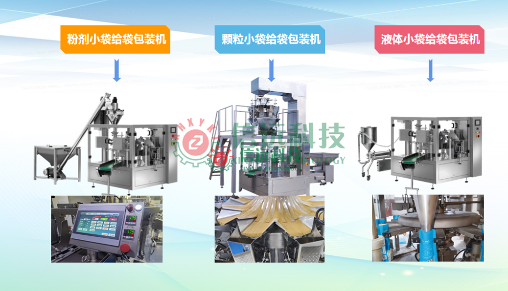 信遠(yuǎn)科技全自動(dòng)給袋包裝機(jī)組,整機(jī)結(jié)構(gòu)同樣采用不銹鋼材質(zhì)制造。該機(jī)具有自動(dòng)完成送料、計(jì)量、給袋、充填、封口、打印、計(jì)數(shù)、輸送等一系列功能,可以生產(chǎn)粉料、顆粒料、液體料。旋轉(zhuǎn)式的多工位給袋包裝機(jī)采用高精度伺服系統(tǒng)帶動(dòng)主軸運(yùn)轉(zhuǎn),袋寬大小可以一鍵調(diào)節(jié),多組機(jī)夾跟隨袋寬同步調(diào)節(jié),包裝過程通過變頻調(diào)速裝置,輕松實(shí)現(xiàn)穩(wěn)定運(yùn)行。