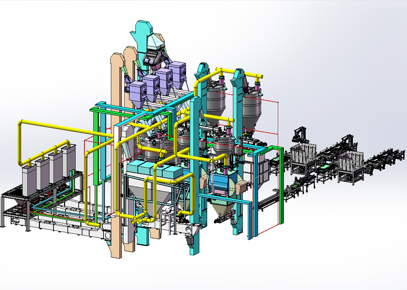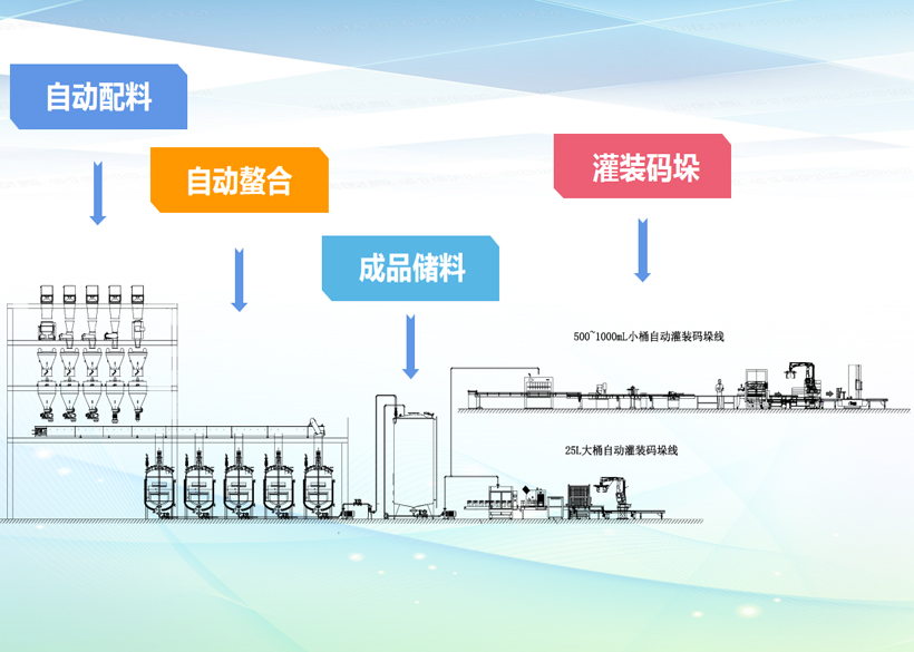 用戶為快速響應(yīng)市場需求,提高生產(chǎn)效率,完成年產(chǎn)任務(wù),需要對后端生產(chǎn)設(shè)備進行全面升級(之前的后端生產(chǎn)設(shè)備均為人工操作)。要求在匹配前端原配料、混合設(shè)備的基礎(chǔ)上,換裝從包裝到碼垛一體化的成套全自動生產(chǎn)設(shè)備。該套設(shè)備需具備生...